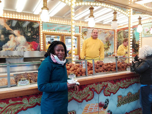 My cousin Monei and I walked through the entire market in search of wine glasses, anything orange, a good bargain and items of mere interest. My cousin had me drinking wine out of water glasses you see, which is bad luck and a sin in the world of wine drinkers (my world to be exact), so I was determined to buy her a set. As we snaked through the many lanes of stalls we came across a food stall selling manyonyomane (oliebollen in Dutch and fat cakes in English) prepared exactly how they are made in my mom’s home village Tonota in Botswana. However they had a variation that had raisins in them and sprinkled with icing sugar, this is what I tried and they tasted like fat cakes with raisins in them, nice. After eating, buying wine glasses, bargaining hard for a scarf and pants and scoring two pairs of shades for two euros we went home to get dressed to the theme and hit the party streets.